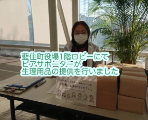 藍住町役場1階ロビーにて生理用品の提供を行いました。