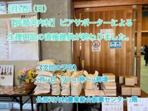 佐那河内村の生理用品の直接提供は