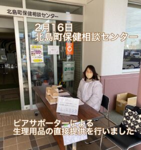 2/16日(木)12:30~15:30 北島町保健相談センターにてピアサポーターによる生理用品の直接提供を行いました。