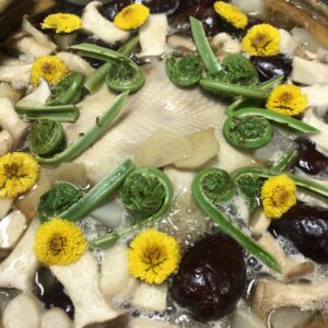 食材:阿波尾鶏、スズナ、スズシロ、セリなどの春の野菜と生薬