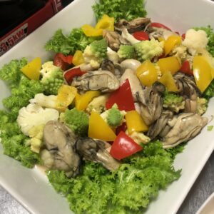 メニューは、牡蠣の香草ソテー、菜の花和え、紅大根の柚酢和え、阿波尾鳥の朝鮮人参煮込み、古代玄米ご飯、金耳の黒蜜和えです。