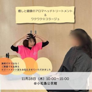 11月28日(木)10:00~15:00 小松島公民館にて「癒しと健康のアロマヘッドトリートメント&ワクワク☆コラージュ」を開催しました